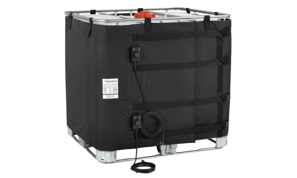 For the heating of bottle-in-cage type intermediate bulk containers (IBC), the HIBC/B (Holroyd Intermediate Bulk Container Heater) heating jacket is an excellent option. This HIBC/B is a specially designed to wrap around the IBC and provide even and gentle heat transfer.