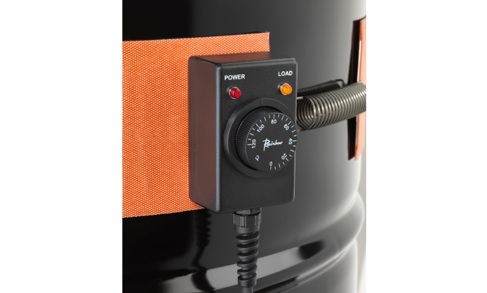 The silicone side drum heater incorporates a 0–120°C capillary thermostat to provide reliable and controlled temperature regulation. Heating is generated by accurately positioned PFA-coated multi-stranded resistance wires, laid widthways throughout the heater to ensure even heat distribution across the drum surface.